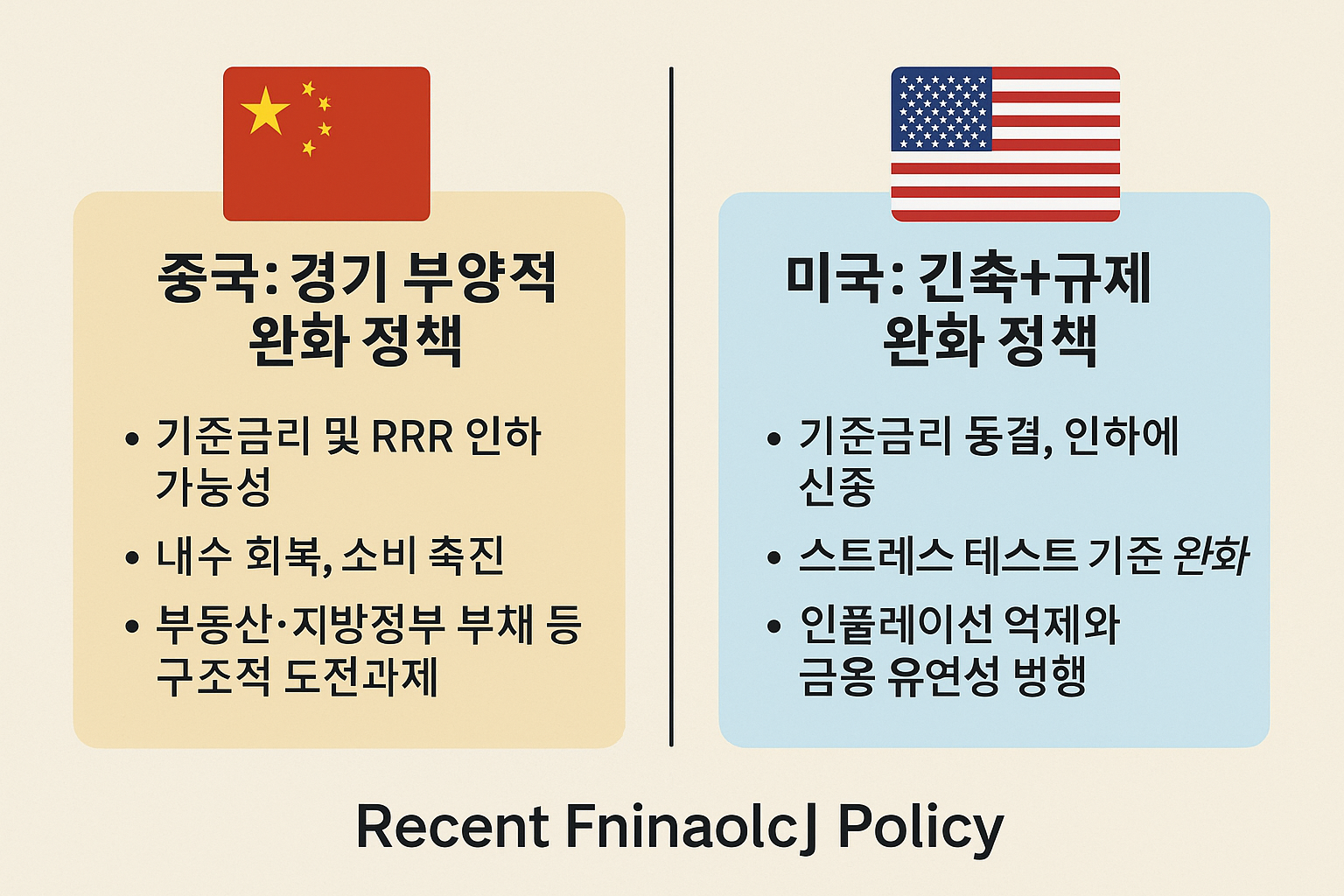 | 은행 규제 | 대출 확대 유도, 지방정부 구조조정 | 스트레스 테스트 완화, 자본요건 안정화 |