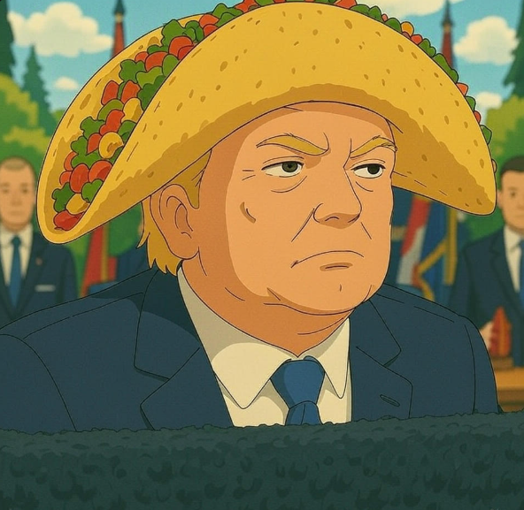 5월 30일, CNBC 기자가 백악관에서 TACO 트레이드를 언급하자 트럼프는 "불쾌한 질문"이라며 강하게 반발했습니다. 그는 이를 "협상의 기술"이라 변호했지만, 이 사건은 TACO를 대중문화로 확산시켰습니다. X 플랫폼에서는 트럼프의 머리가 타코로 변하거나 닭으로 묘사된 AI 밈이 폭발적으로 퍼졌죠!